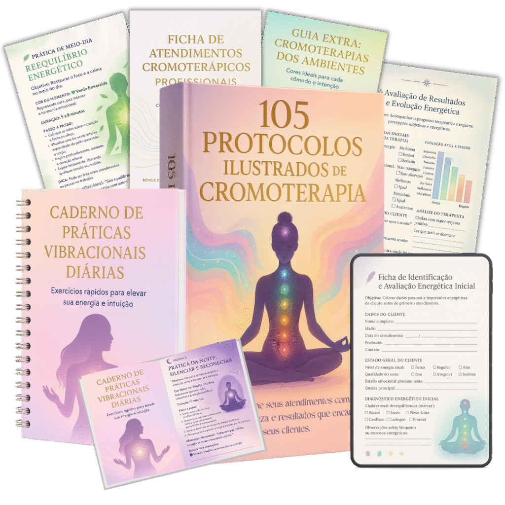 “Atendo com terapias há mais de 5 anos, mas nunca tinha usado a cromoterapia com tanta precisão. O guia é muito didático e direto ao ponto. Uso os protocolos de ansiedade e vitalidade com todos os meus clientes — e os feedbacks são incríveis! É como se cada cor realmente despertasse o que estava adormecido.”